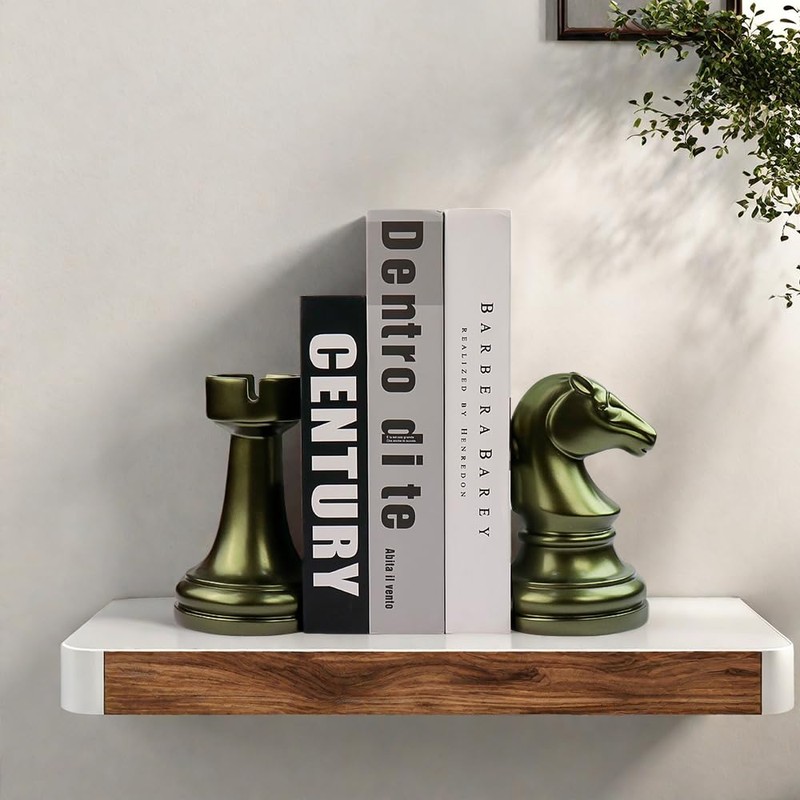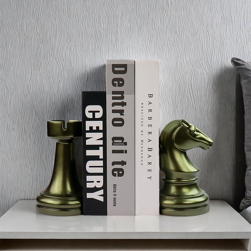 These unique bookends consist of a pair of Chess . It looks very harmonious and interesting and can inspire our imagination.These decorative bookends will add interest and fun to any bookshelf side table or console table.