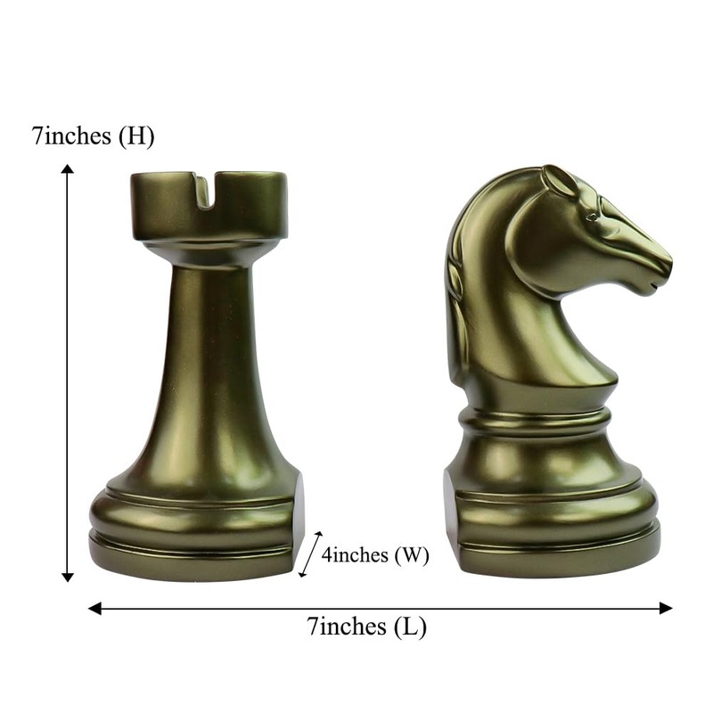 jinhuoba Decorative Bookends Chess Bookends, AENEOUS Heavy Book Ends Supports, Unique Book Ends Decor for Office Home Desk Bookrack, 7"(L) x4(W) x7(H), 1Pair/2Piece