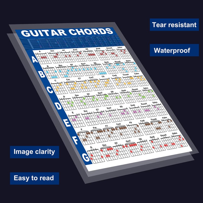 - Laminated guitar chords chart: our guitar chord posters are made of thickened paper, high-definition printing and laminating, sturdy and durable, waterproof and easy to clean