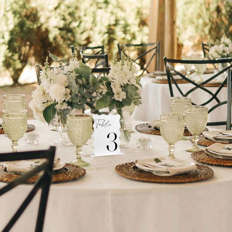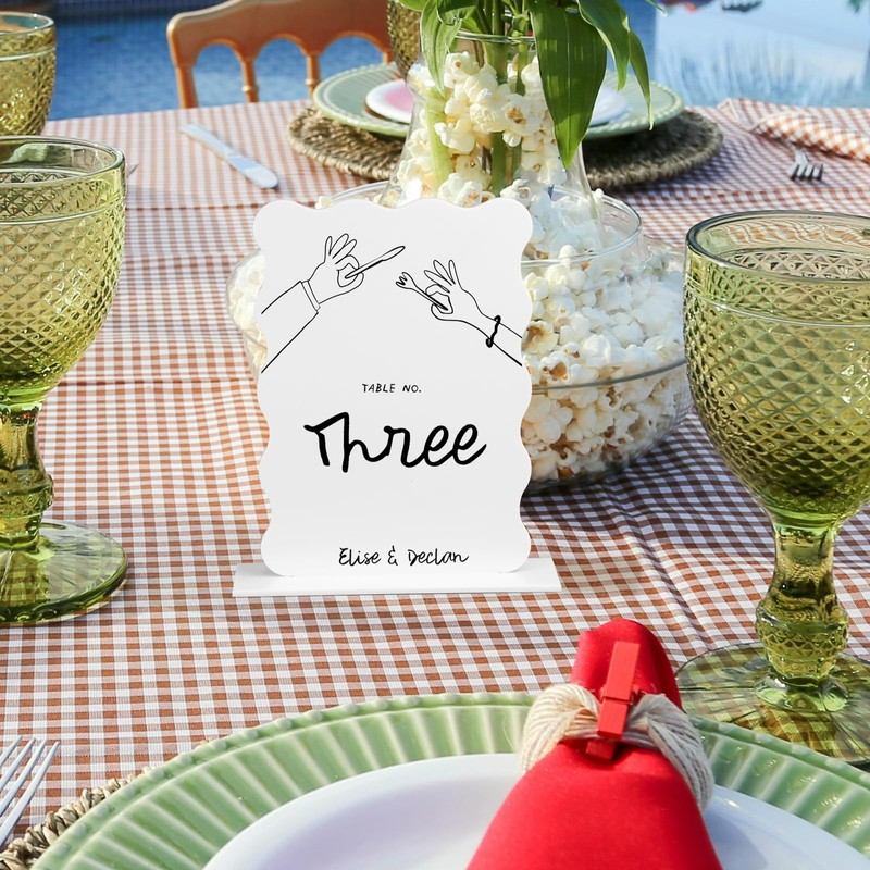 - SIMPLY& BEAUTIFUL: These modern scalloped acrylic sign are made out of 1/8 inch thick white acrylic material. We love the sleek, clean lines of these wavy edged rectangle acrylic blank table signs, they are a beautiful wedding table centerpieces, perfect for displaying on Tabletop Centerpiece. These elegent wave acrylic table sign are the perfect touch to add to your wedding.