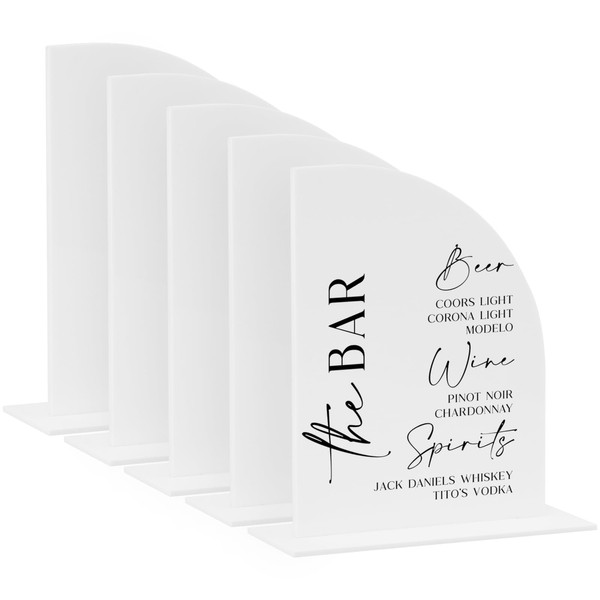 - PACKAGE INCLUDES: 5 Pack 8 x 10 inch white half arch acrylic signs with acrylic base, smooth edges,1/8 inch thick. Each white half arch acrylic sign has a protective film on both sides to prevent scratches and when you are ready to use it, you should peel it off.