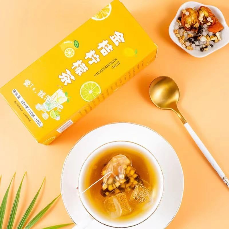 JINQI Chinese Fruit Tea Caffeine Free Fruit Tea bags Mixed fruit tea (Kumquat Lemon Tea) 金桔柠檬茶 (200g, 10gX20Bags)7.05OZ