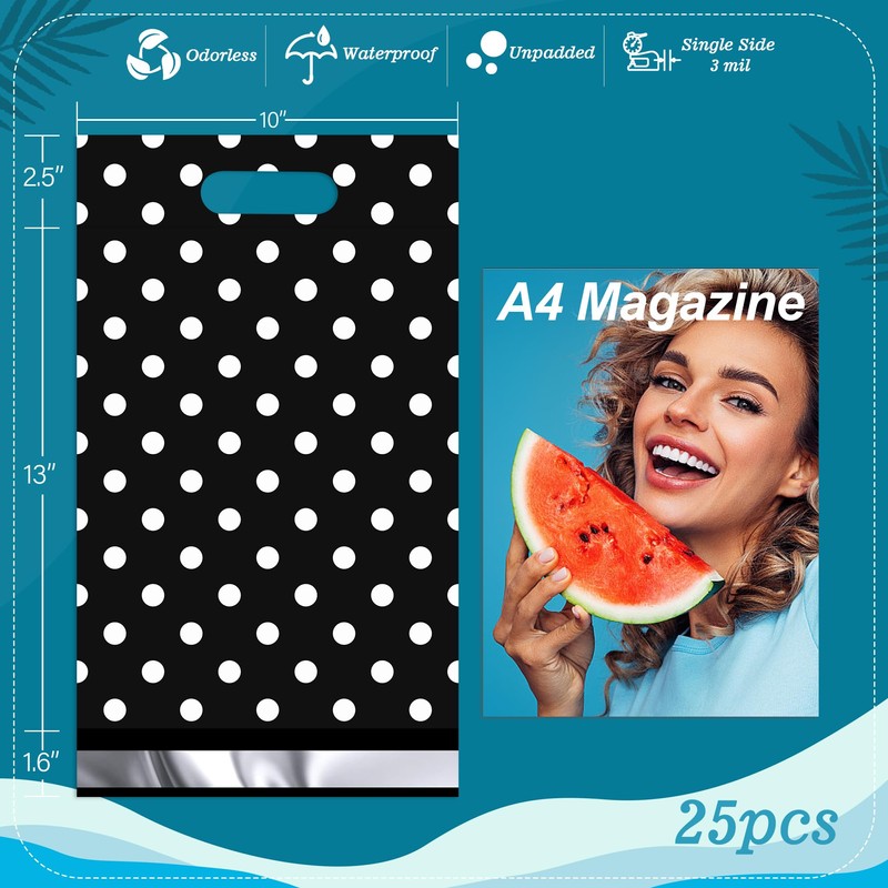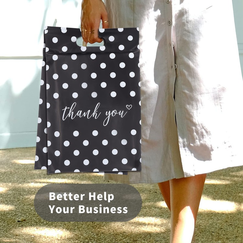 JinRuiKJ Poly Mailers with Handle 10x13 Inch 25 Pcs, Easy to Carry Packaging Bags for Small Business, Thank You Shipping Bags with Self Adhesive Strip, Tearproof and Waterproof - White Polka Dot