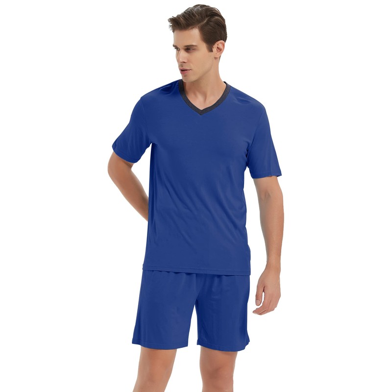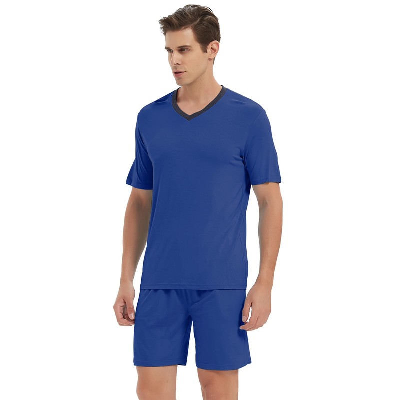 JINSHI Men Short Pajama Set Performance Lounge Sleep Pjs Set Short Sleeve Lounge Bottom Pant with Pocket Blue,S