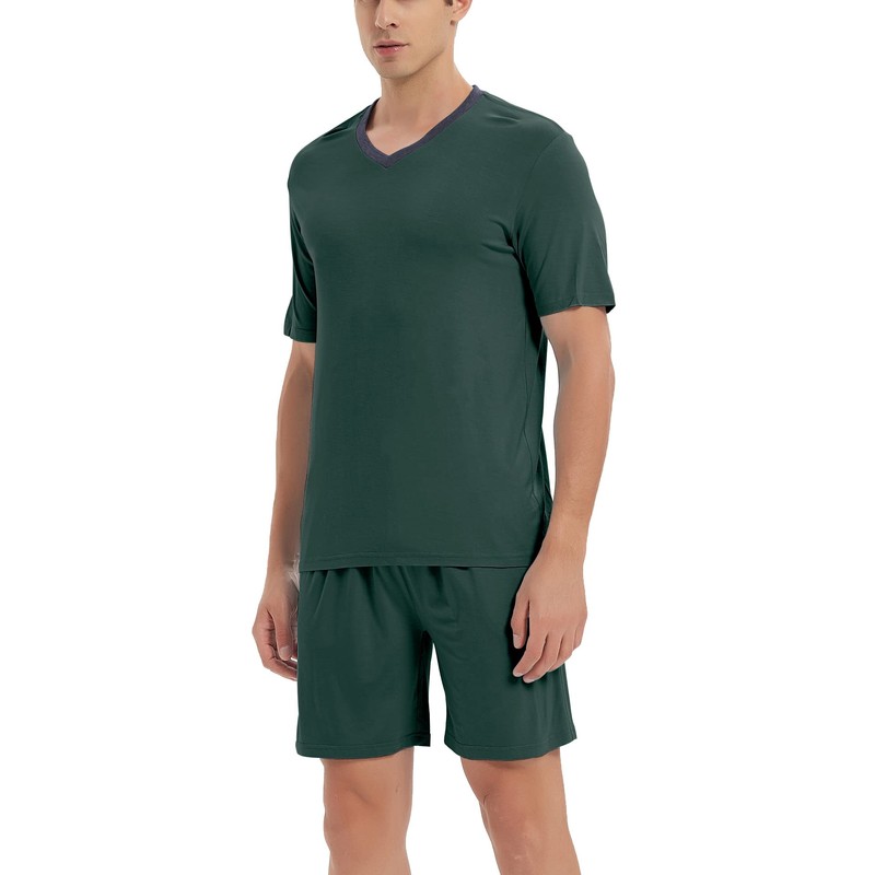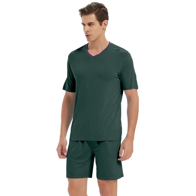 JINSHI Short Pajama Set for Men 2 Piece Pjs Bottom with Pocket Home Sleep Lounge Set Nightwear Sleepwear Dark Green,L
