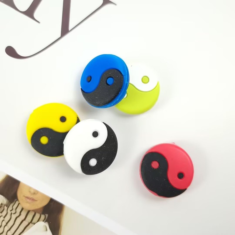 Jinshining White Tai Chi Pattern Tai Chi Shape Tennis Racket Vibration Dampener Soft Silicon Racket Dampener Cartoon Shape Tennis Racquet Shock Absorbers Tennis Racket for Racquetball
