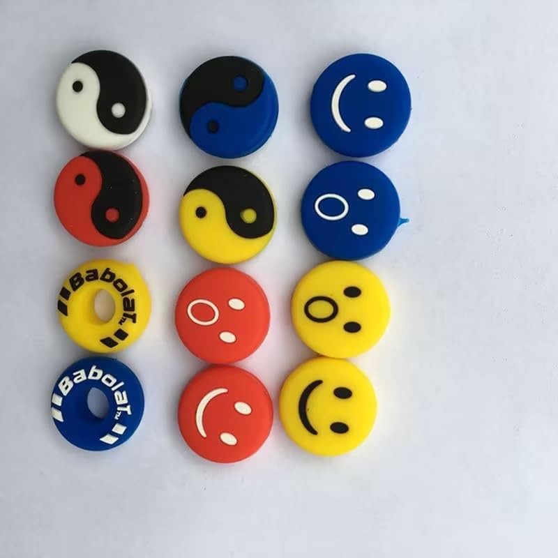 - Tennis racket vibration dampener with unique pattern, designed to reduce shock and string vibration during play