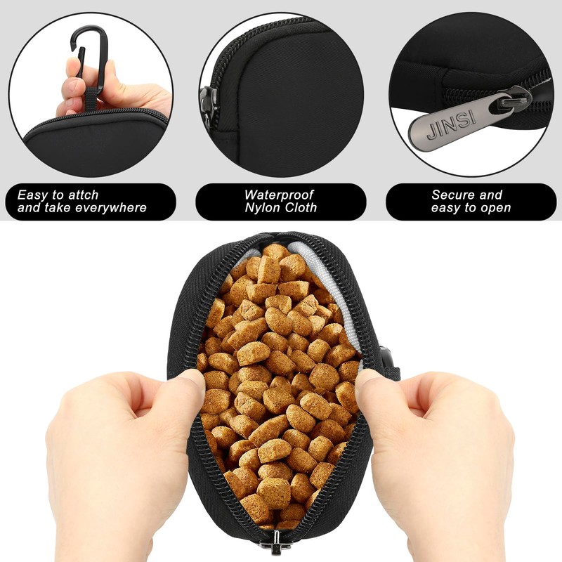 JINSI Waterproof Dog Treat Pouch, Small Pocket Sized Pet Training Pouch, Dog Walking Bag Holder with Carabiner, for Puppy Travel or Outdoor Use, Black