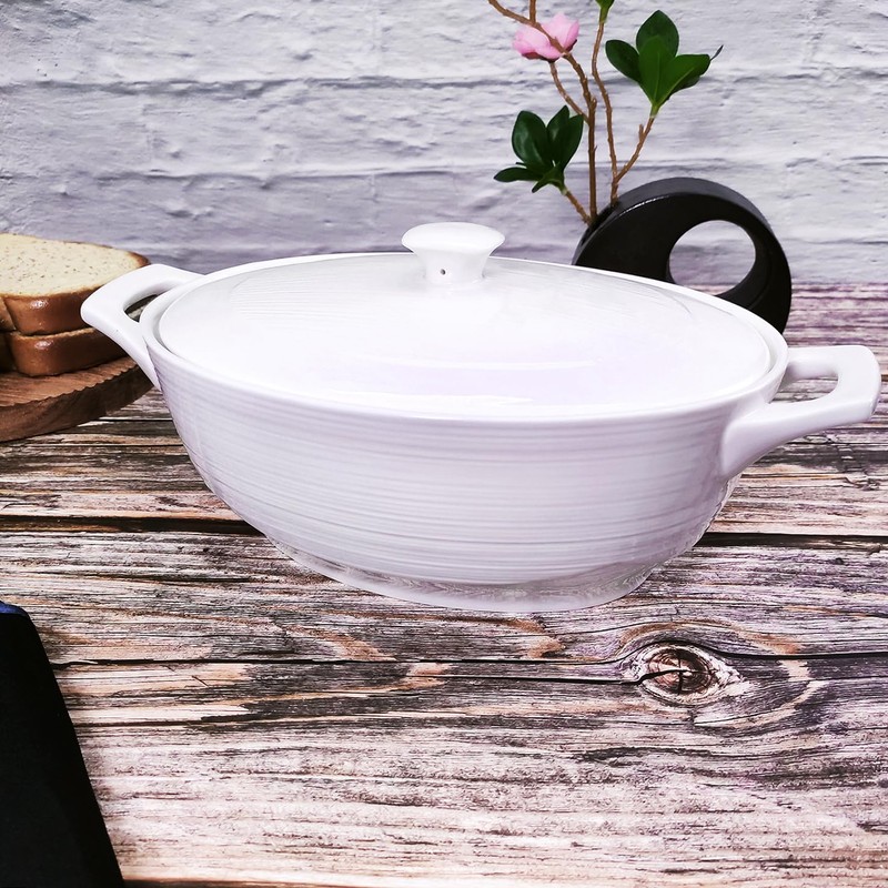 jinsongdafa Casserole Dish with Lids,1.9 Quart French White Ceramic Tureens, ...