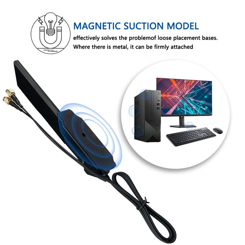 - Parameter: 1. Gain: 9dBi. 2. Impedance:50Ω 3. Direction:Omni-directional, 360-degree coverage 4. Application Condition Operating Temperature:-40°С ~ +70°С 5. Frequency:2.4GHz 、5.8GHz 、6GHz Tri-band ; Support wifi 6/wifi 6e 6. Connectors: RP-SMA Male 7. Cable Lenth: 80CM
