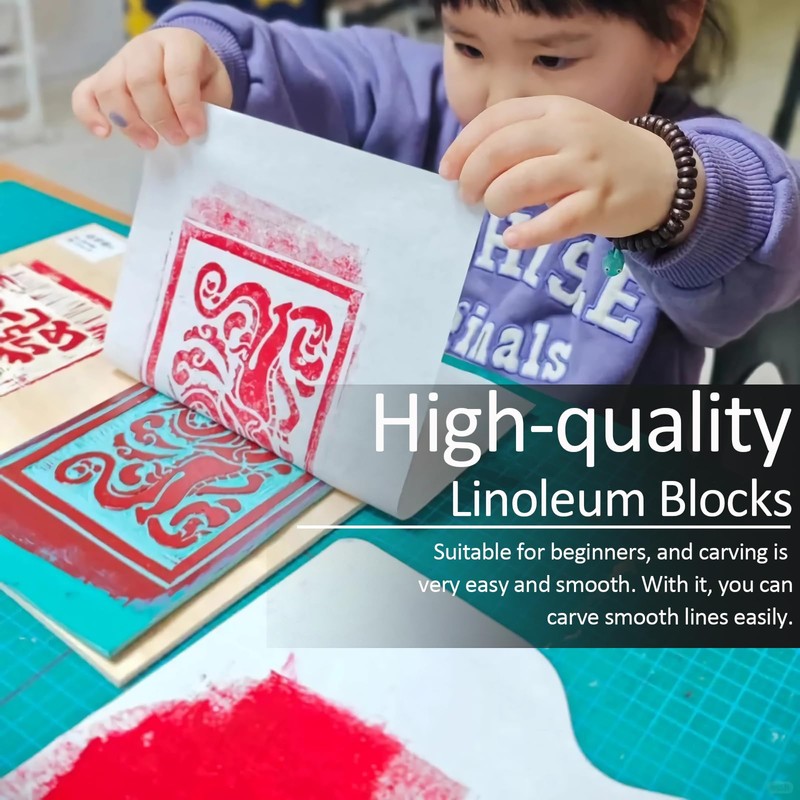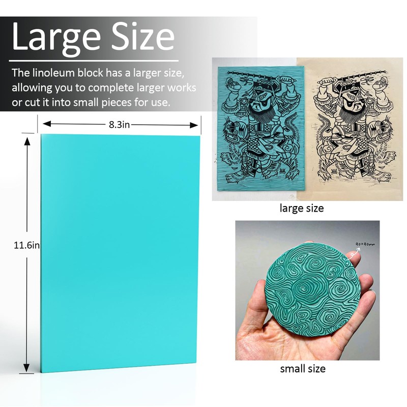 - A larger size, the size of this linoleum block is 11.6in 8.3in, that is convenient for you to complete larger Printmakings. Of course, you can also cut them into several small pieces to use. Its thickness is 1/9 ", which makes it convenient for you to fix the linoleum block on the drawing boards or other boards for printing work.