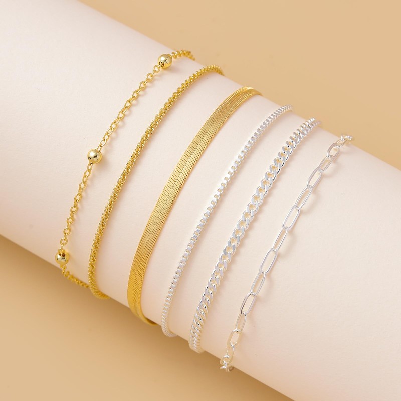 Jinxiuge Gold Ankle Bracelets for Women Dainty 14k Gold Plated Waterproof Cuban Link Chain Anklets Set Layered Anklet Bracelets for Women Teen Beach Gift Adjustable Size 6 Pcs