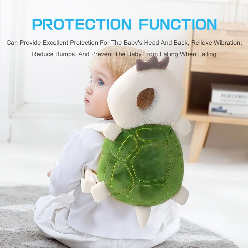 JINYJIA Baby Head Protector Backpack, Baby Head Protection Pillow, Adjustable Toddler Baby Head Protection Safety Soft Pads, Head Protection for 4-24 Months Baby Learning Walking,Turtle