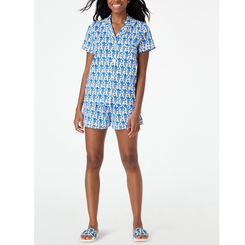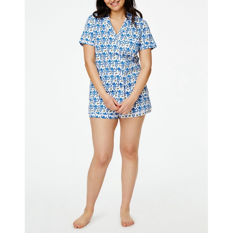 - Feature: Lounge sets for women: Monkey print, loose fit. Shirt: Short sleeve, turn down collar, button closure, v neck, chest pocket. Shorts: elastic waistband, wide leg