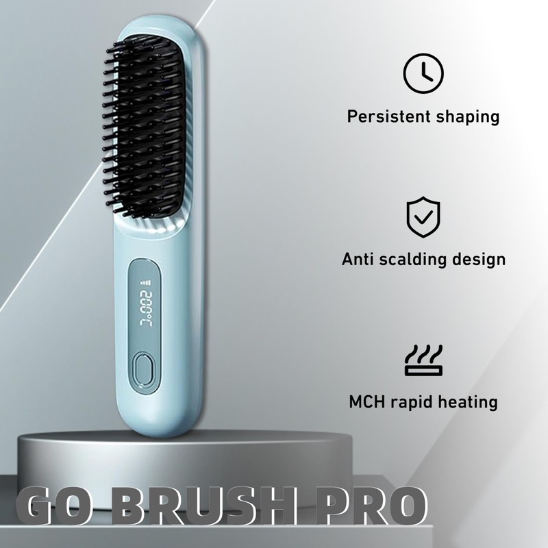 JIOOKEYU Cordless Hair Straightener Brush - Rapid Heating Technology,Adjustable Heat Settings - Portable 3-in-1 Styling Tool for Travel - Cordless Curling Iron Rechargeable - Go Brush Pro (Blue)