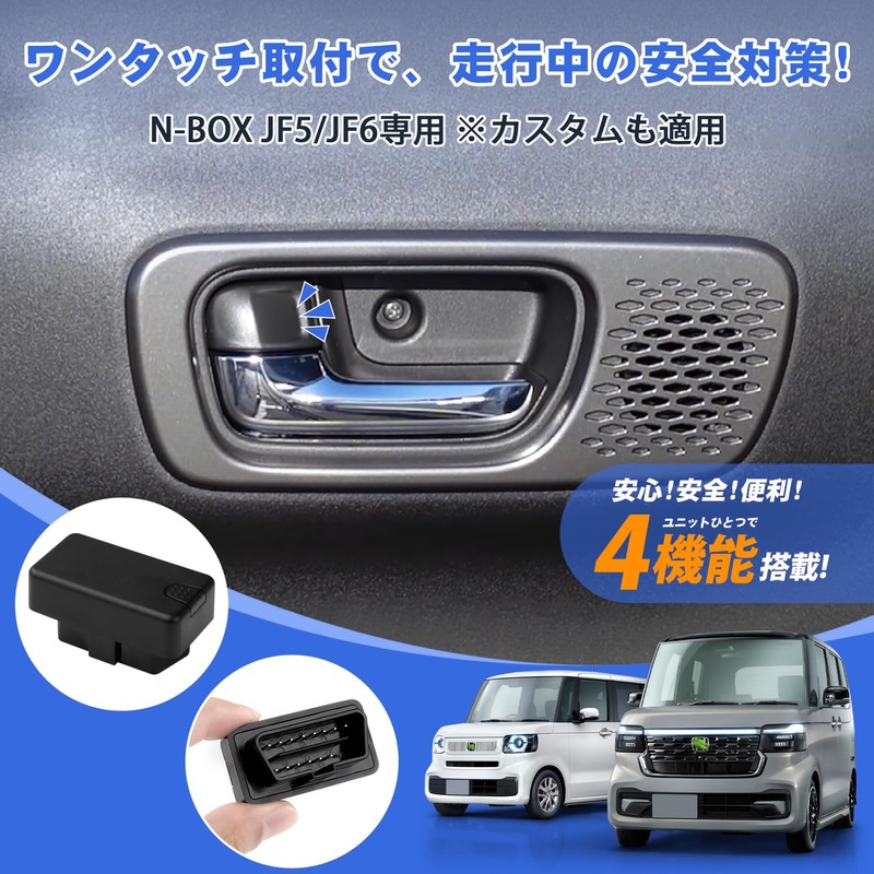 - Design for vehicles: Honda N-BOX N-BOX Custom N-BOX Joy; Model: JF5/JF6/JOY (Only fit gasoline vehicles); Year: From October 2023; Set Contents: NBOX Car Speed Interlocking Door Lock Kit x 1P, Instruction Manual x 1P. Please check the shape of the product before purchasing