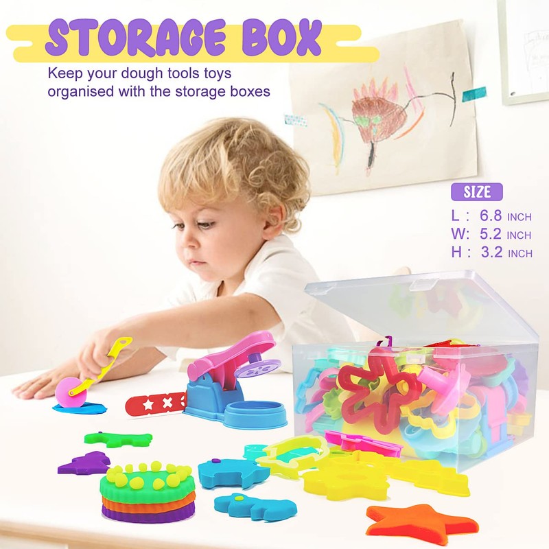- ❤Recyclable Package: The storage case made of sturdy plastic, store and organise all of the playdough tools toys. After you're done playing, pack everything back into the case, solve the problem of confusion and loss.
