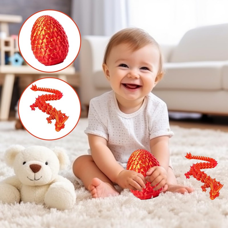 Jiounie Dragon Egg with Dragon, 3D Printed Dragon Egg, 3D Dragon, Realistic Dragon Eggs in the Egg Jointed Fully Movable, Surprise Easter Dragon Eggs, Home Decor (Radiant Red)