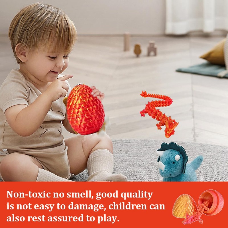 - High-quality and safe materials: the dragon egg with dragon is made with the latest 3D printing technology, which ensures high detail and vibrant colours. Ideal for children's hands, at the same time the detailed surface convinces even demanding collectors.