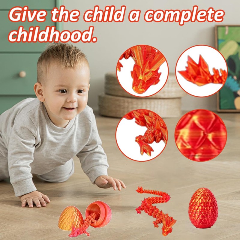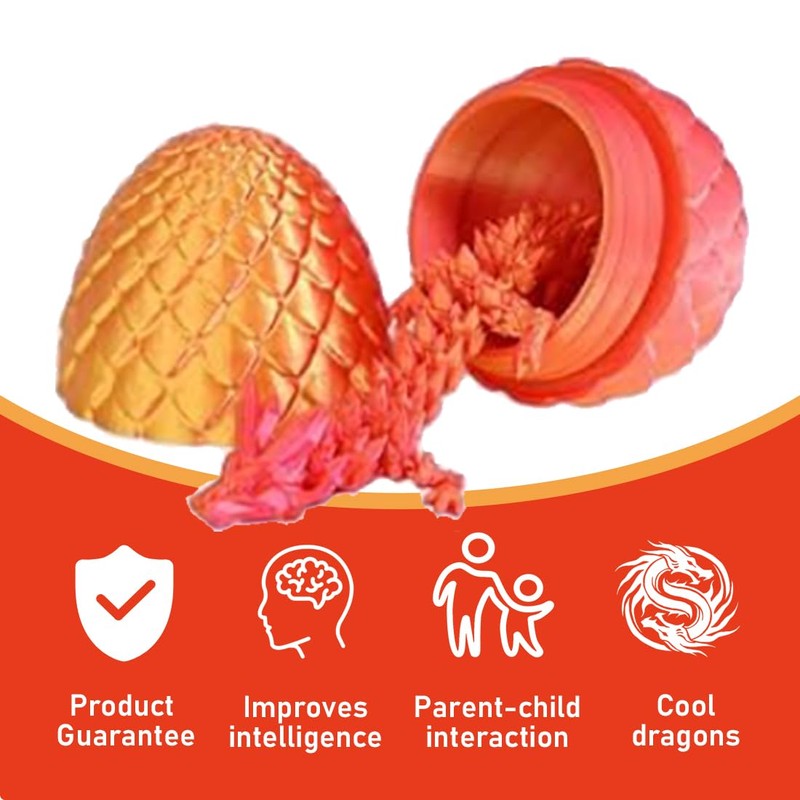 - Very realistic: you will receive 1 articulated crystal dragon and 1 egg, the dragon is 22 cm tall, the egg is 8 cm tall. This 3D printed dragon egg and dragon egg are modelled on the Chinese dragon and precisely designed and printed. Every single scale, every claw and even the egg grooves look as vibrant as if they could start breathing at any moment.