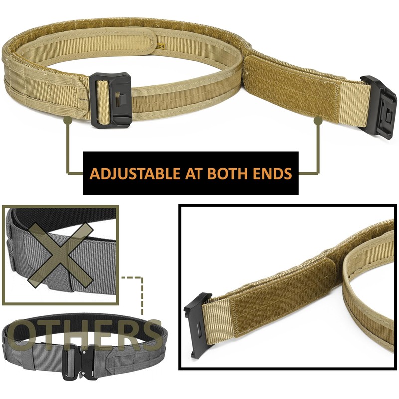 - ALL-AROUND USE: Perfect for military, hunting, or range use, this tactical belt is a must-have for any tactical enthusiast. Whether you're looking for a hunting belt, a range belt, or a war belt, this belt is sure to meet your needs.
