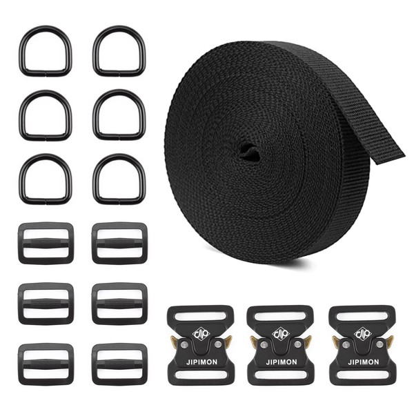 JIPIMON Nylon Strap, 1 Inch Webbing Nylon Strap With Heavy Duty Metal Buckles, Include Tri-Glide Slide Clips Metal D Rings