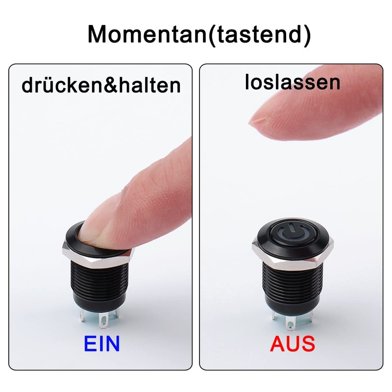 • Metal casing: the switch with metal housing is robust and durable. Its surface is coated. With the black layer, the switch is protected against rust.