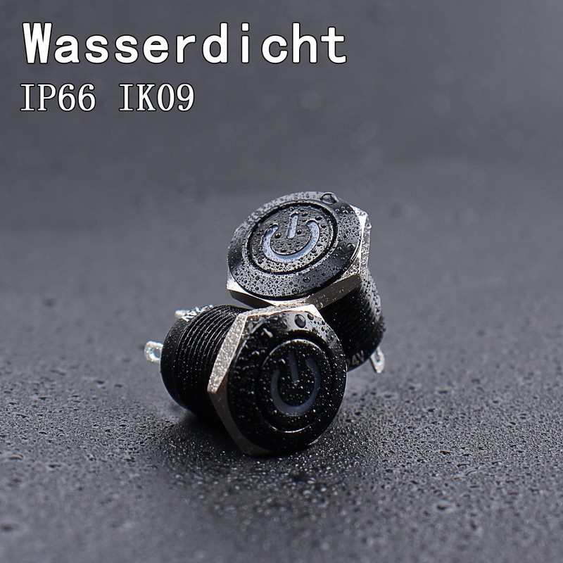 JIQI 2 x 12 mm Momentary Waterproof Pressure Switch 12 V to 24 V 2 A IP66 But...