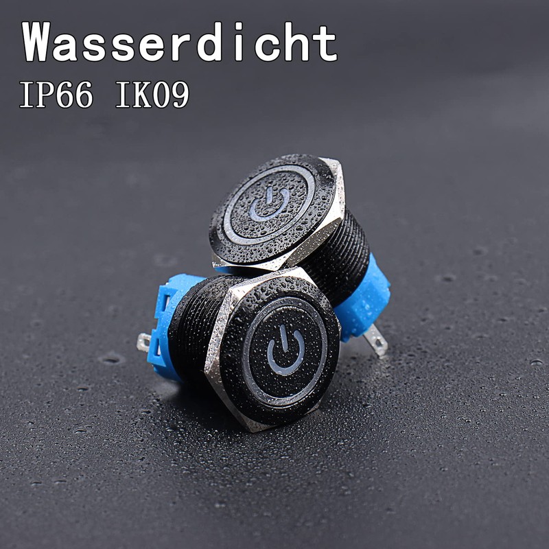 JIQI 22 mm Momentary Waterproof Pressure Switch 12 V to 24 V 5 A On/Off Button Switch with LED Lighting Black Metal Housing Pre-Wired Momentary Push Button for Car DIY Car Motorcycle (Blue)