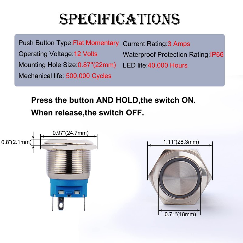 - 【Durable Push Button】Mechanical life: 500,000 cycles.The work life of the led light is more than 40,000 hours