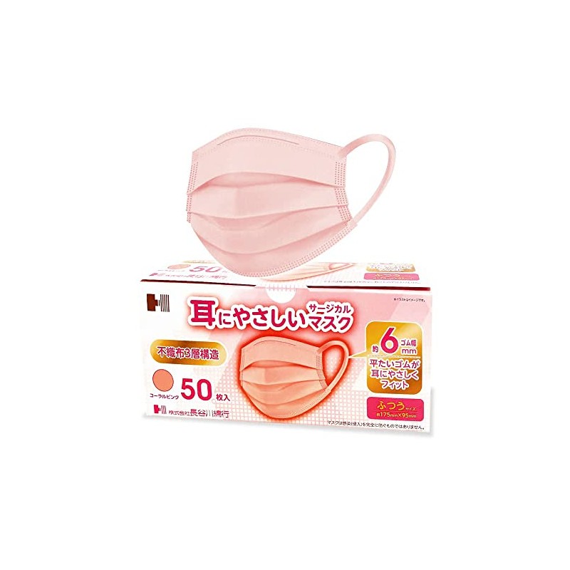 [長谷川綿行] JIS規格適合 耳にやさしいサージカル マスク 1箱 50枚 ピンク ひも6mm