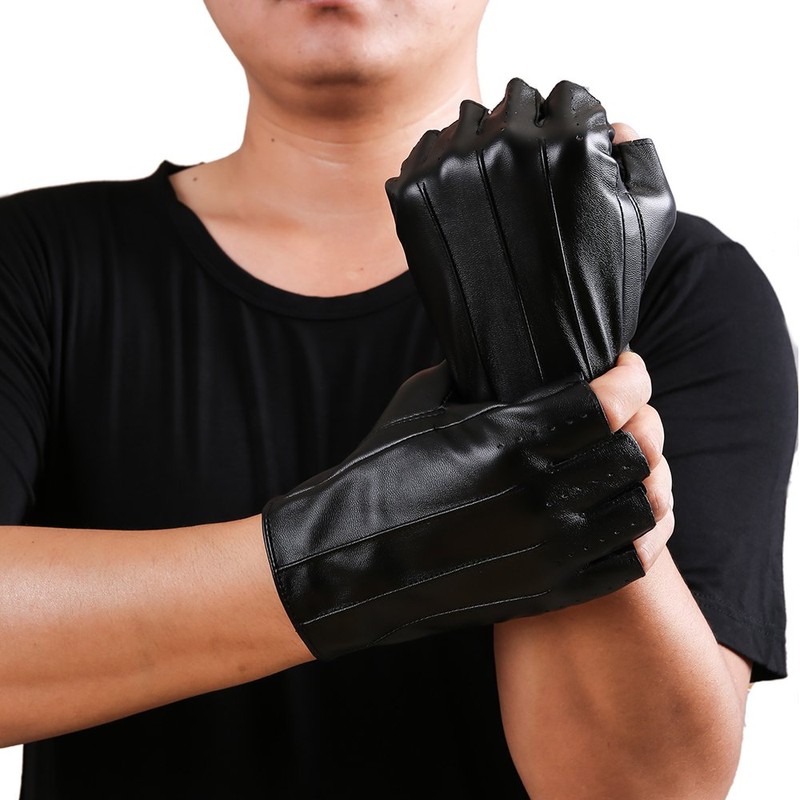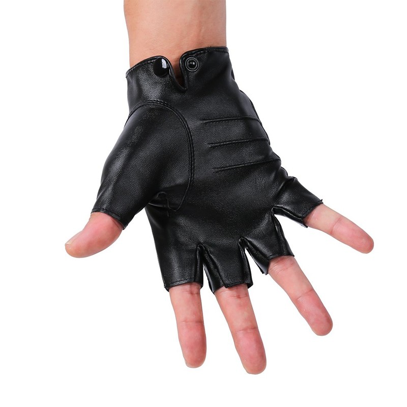 JISEN Men PU Leather Punk Half Finger Snap Performance Gloves Z-Black
