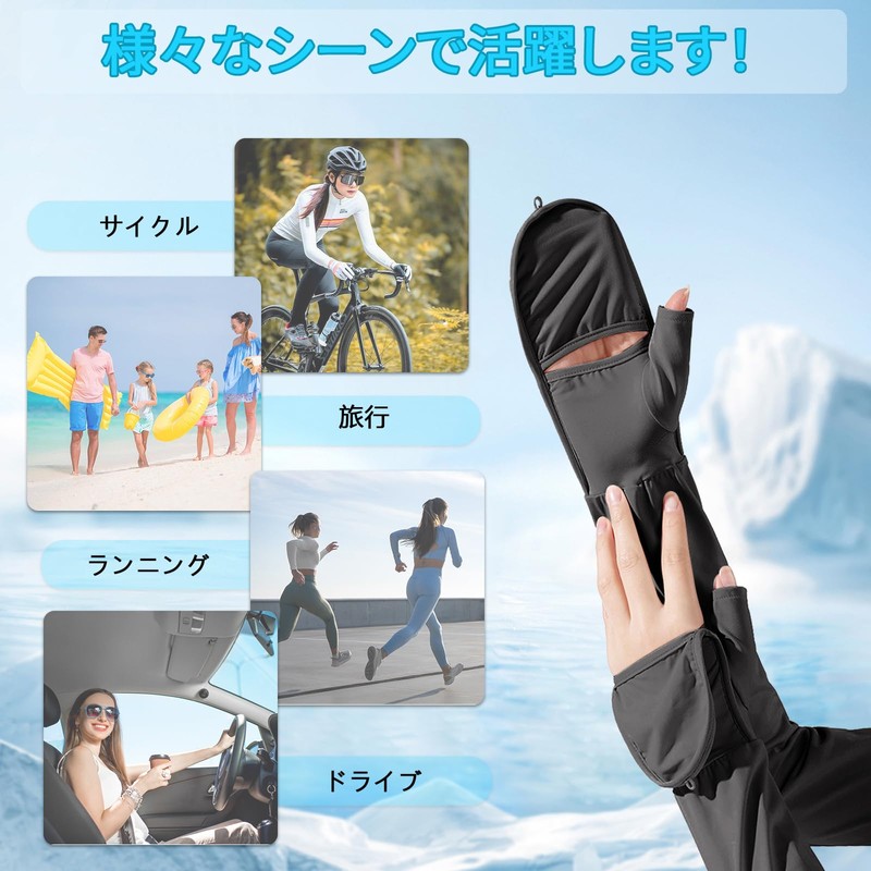 - [Cool to the touch] The arm cover uses a cooling material to keep you comfortable in the summer. When it gets wet with water or sweat, it will reduce the temperature by 3-5 degrees as the moment it touches the skin due to vaporization heat. Perfect for summer sun protection