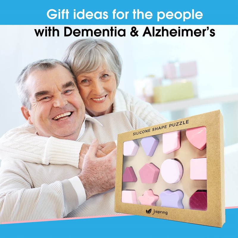 Jispring [Silicone] Shape Puzzles for Dementia, Cognitive Matching Games for Elderly, Fidget Sensory Toys for Alzheimers, Keeping Hands Busy, Anxiety Relief Tiles