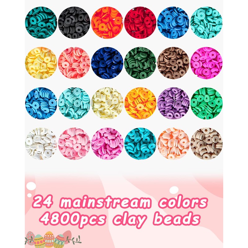 - Bead set: 10660 bead set, including 4800 24-coloured 6 mm soft clay beads, 4800 24-coloured 3 mm pearls, 200 of the locking ring, 150 of gold colour letters, 150 of gold beads, 150 of the spacer beads, 100 of flower separation beads, 100 pocket buckles, 50 6 mm 6 mm pearl 0 of seahorse pendants, 20 of gold pendants, 20 of love rings, 20 stars, 20 starfish, 20 ear hooks, 20 earrings, lobster buckle 20. The rich styles are suitable for your different DIY style creation.