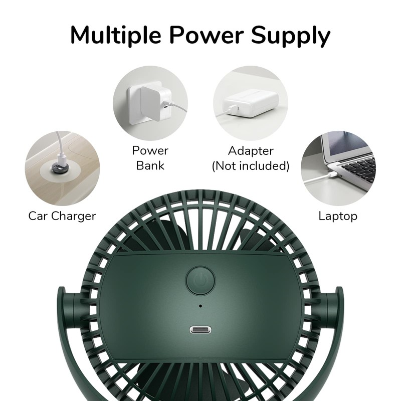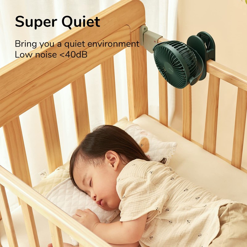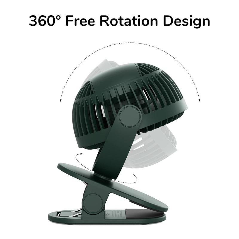 JISULIFE Clip on Desk Fan, Mini Stroller Fan with Strong Wind, 4 Speed Modes, Quiet, Small USB for Outdoor Camping Golf Cart Indoor Treadmill Table - Green