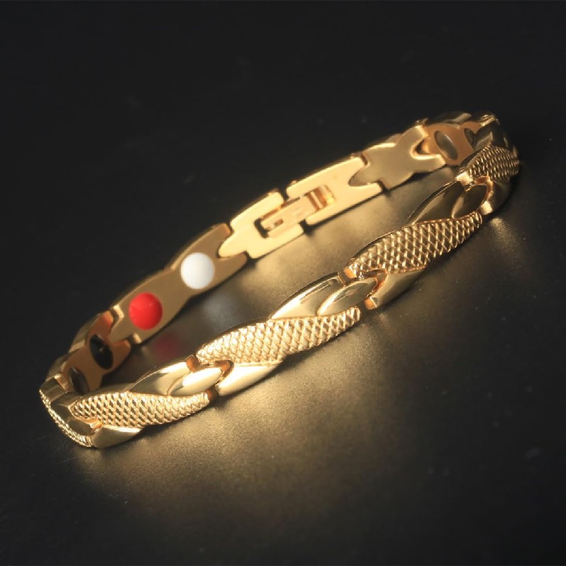 JITNGA Titanium Steel Jewellery Steel Magnetic Bracelet Titanium Magnetic Bracelet Women's Magnetic Bangle for Men Women (Gold)