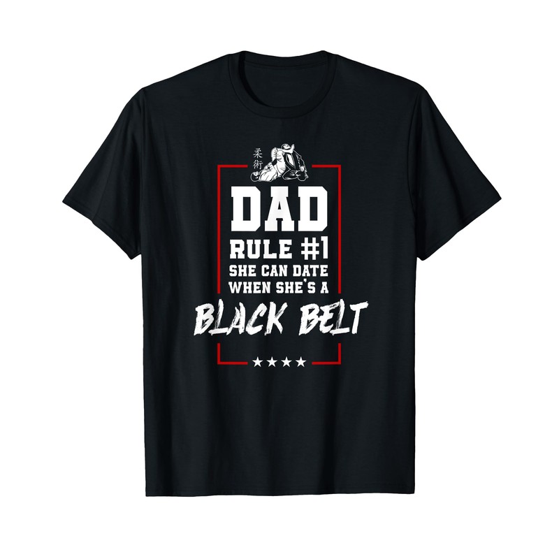 - This funny jiu jitsu design reads dad rule #1 she can date when she's a black belt and is a great brazilian bjj gift idea.
