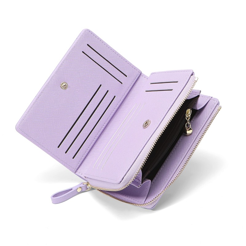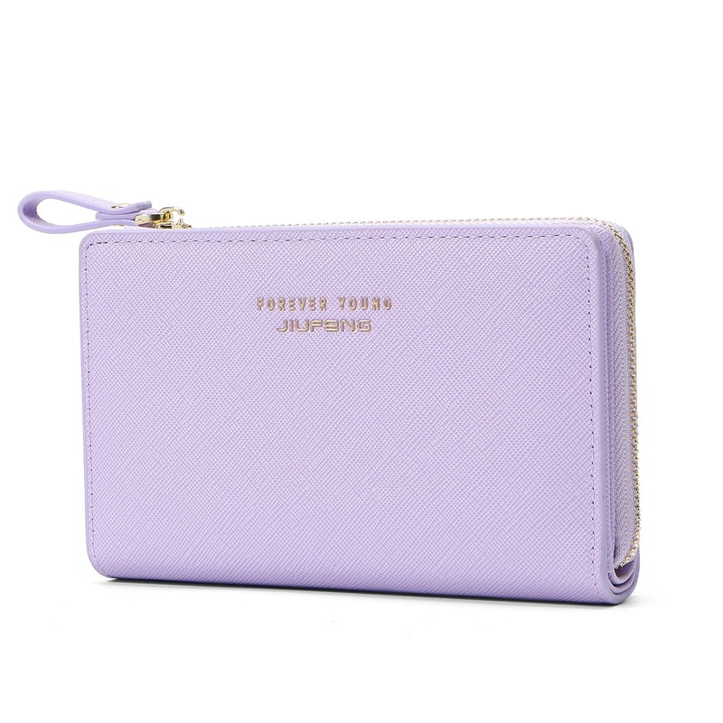 JIUFENG Women Zipper Wallet RFID Blocking Multi Purpose Coin Pouches Credit Card Holder Short Purses (Purple)