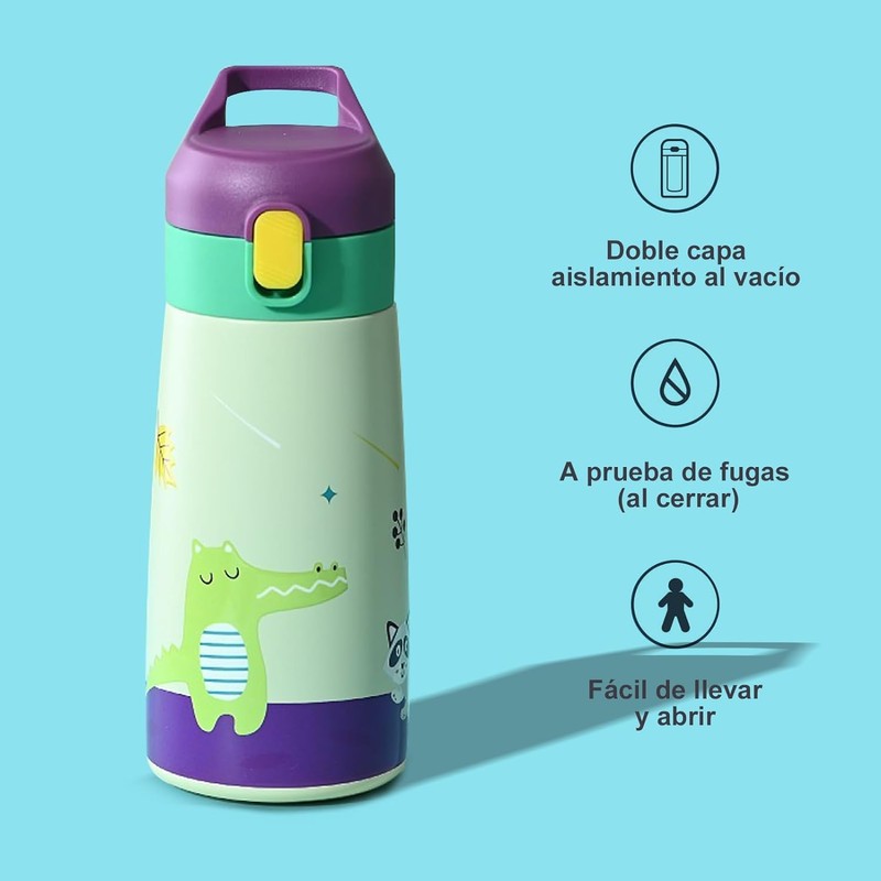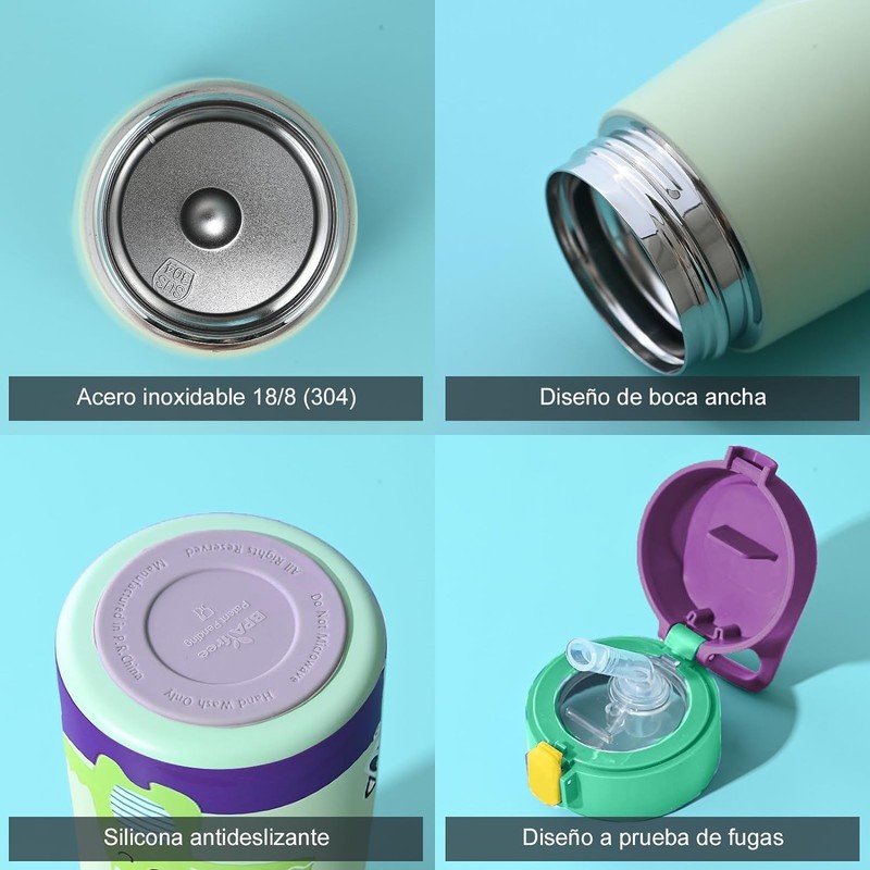 - 【Doble capas de acero inoxidable】: Doble capas tienen un buen rendimiento a prueba de fugas y puede mantener las bebidas frías y calientes, es la mejor botella de agua para que los niños vayan a la escuela.