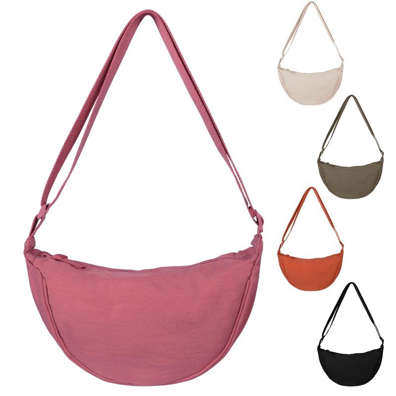 Jiusely Crescent Hobo Cross Body Bag Pink Nylon Dumpling Bag Nylon Crescent Bags Women Nylon Shoulder Bag with Zipper Portable Crescent Purse with Adjustable Strap for Women Daily Use Shopping Work