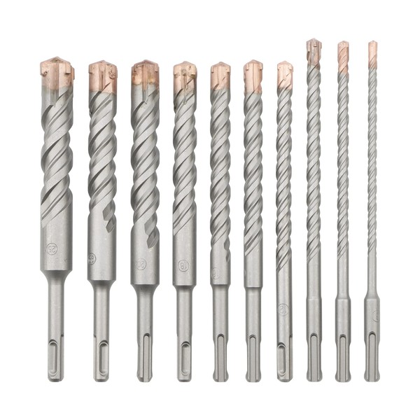• Carbide Tip 10-PIECE DRILL BITS - Set includes: 1/4 X 8-inch, 5/16 X 8-inch, 3/8 X 8-inch, 1/2 X 8-inch, 9/16 X 8-inch, 5/8 X 8-inch, 23/32 X 8-inch, 25/32 X 8-inch, 7/8 X 8-inch, 1 X 8-inch.