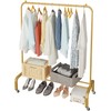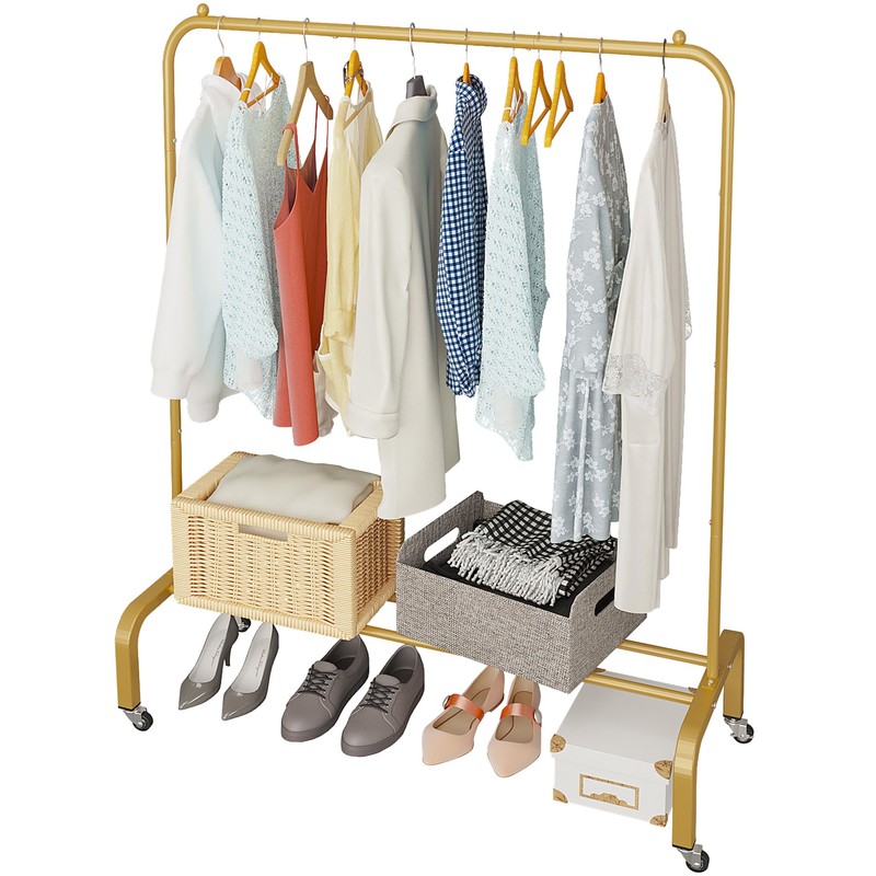 JIUYOTREE Metal Clothing Rack with Wheels 43.3 Inches Rolling Clothes Garment Coat Rack with Bottom Shelf Clothing Rack for Hanging Clothes Coats Skirts Shirts Sweaters Gold