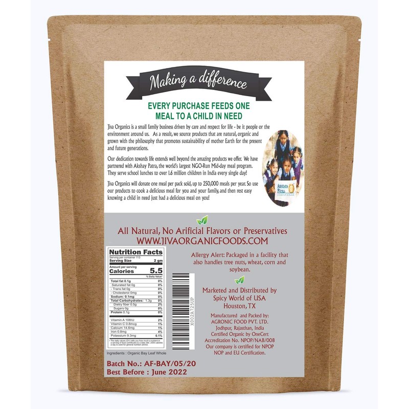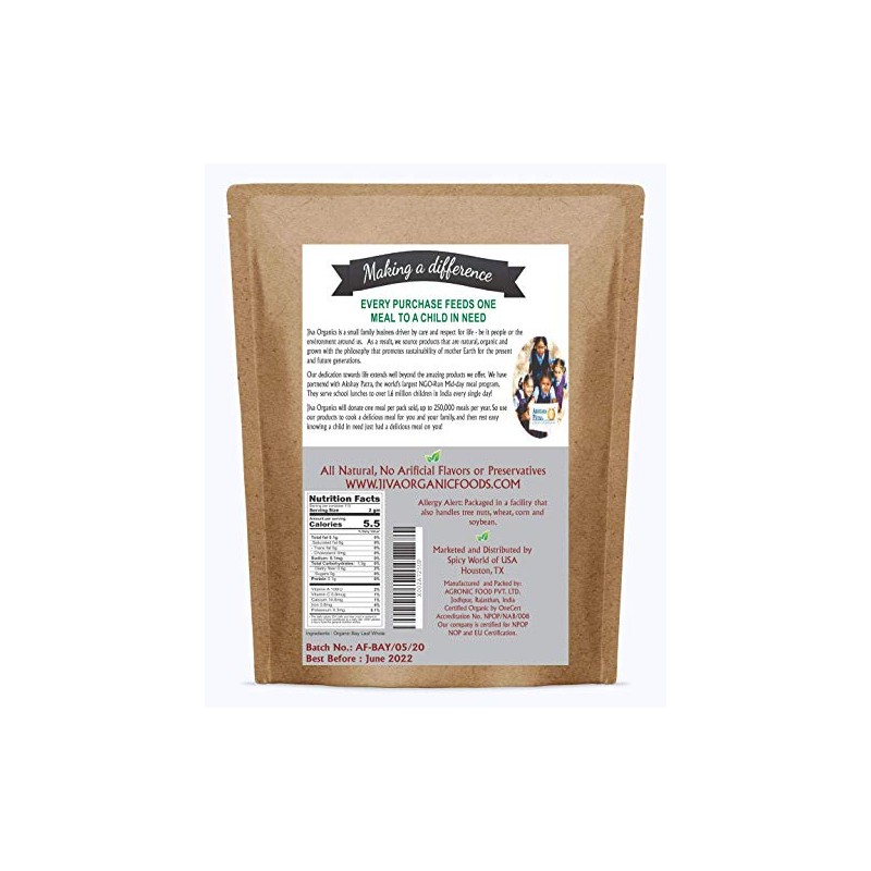 • Pure & Natural - Jiva Organics Bay Leaves are truly all natural. We never add artificial colors, flavors, sweeteners, preservatives or fillers and additives to our products.