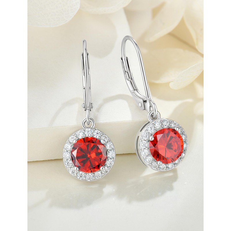 JIWOY 925 Sterling Silver Dangle Drop Earring with Round Leverback Created Ruby Jewelry for Her