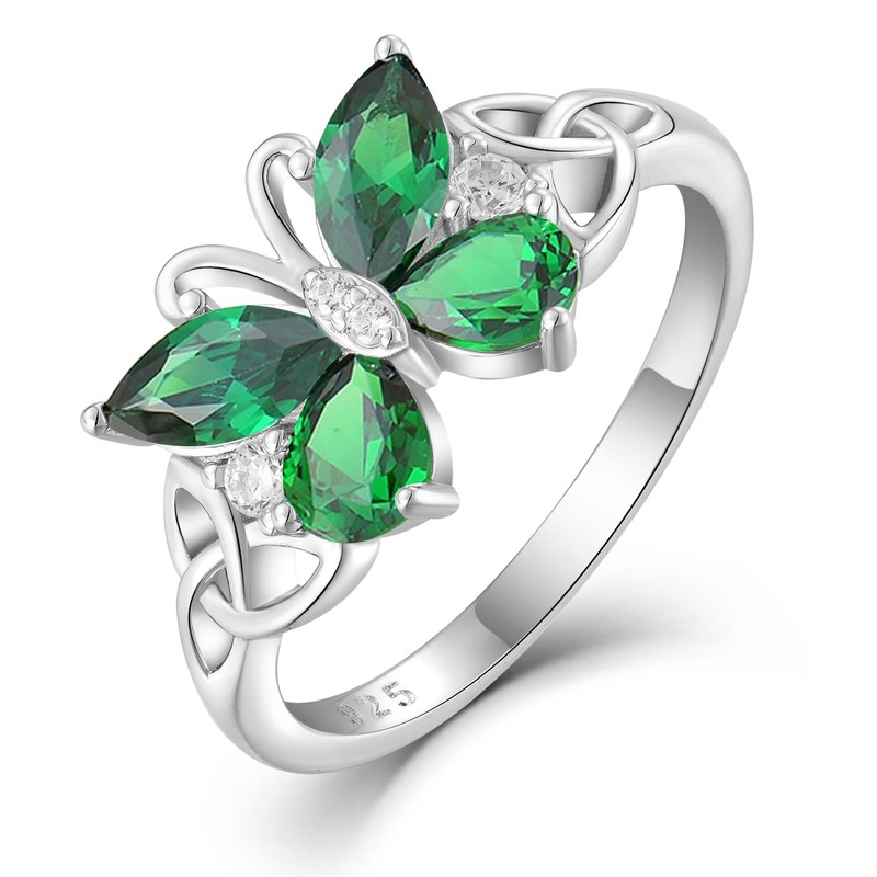 JIWOY Butterfly Rings Celtic Knot Ring Sterling Silver Twisted Rings for Women Birthstone Jewelry, 7, Emerald, NR43431E-7
