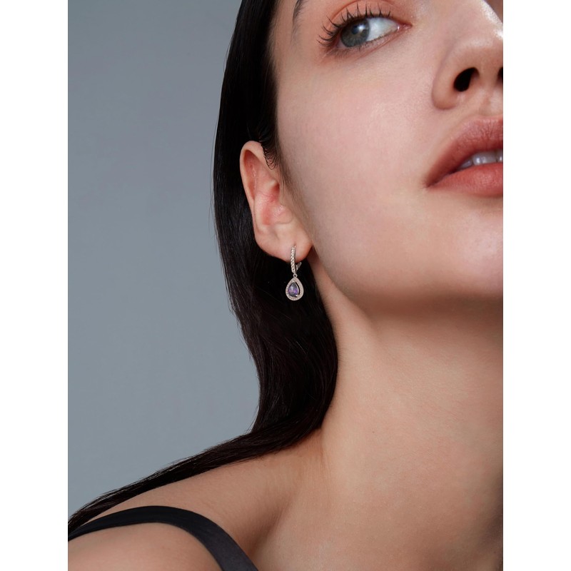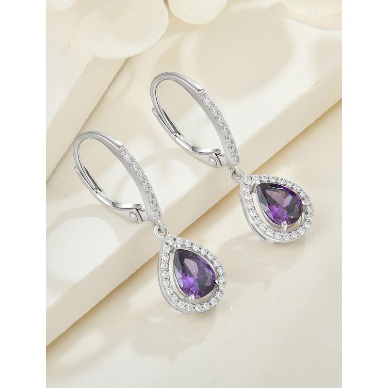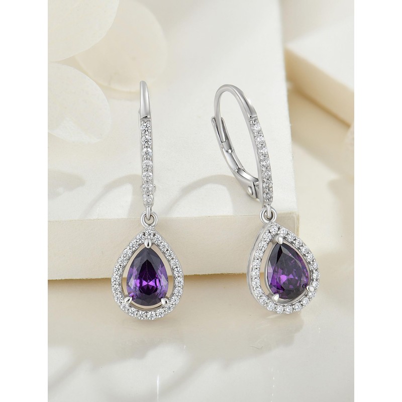 - SPECIFICATIONS-Total length:1.09inches(27.6mm);Set with 2pcs 5*7mm pear-brilliant-cut AAA created amethyst