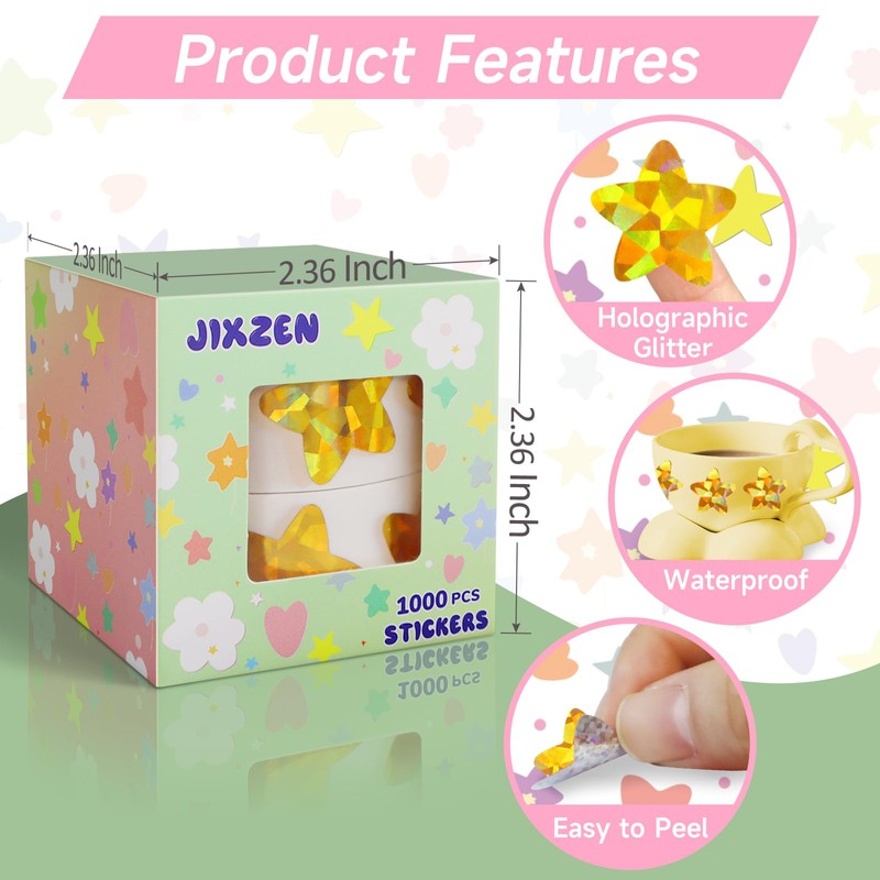 - 1000Pcs Golden Shiny Star Stickers: Our JIXZEN 2 rolls of gold star stickers include 1000pcs gold sparkly holographic foil stickers for multipurpose using in a long time. It comes with 2 kinds of sizes--1.0 inch and 1.5 inch for your preference choice. By our ingenious design, the sticker rolls are packaged in an exquisite bright-colored special box. Our incentive stickers could satisfy kids’ and students’ fantasies for reward fully enough