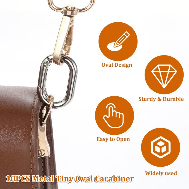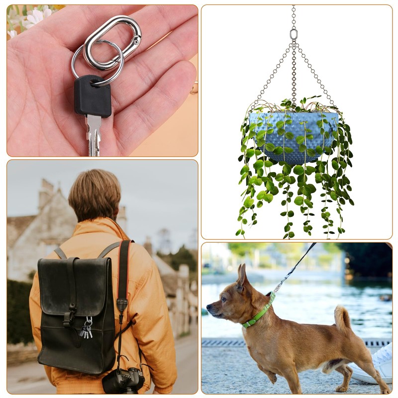 - 【Easy to Use】: This oval carabiner snap clip features an easy-to-use and install spring gate design, which is durable, flexible, and retains good elasticity over time. The spring gate can be manually clamped to secure it to your desired item and can be effortlessly disassembled by hand without any tools