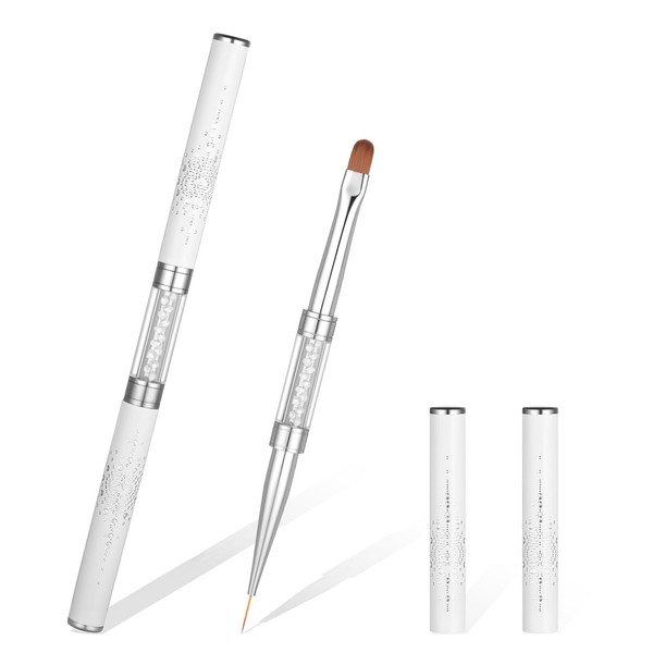 JIYIN 2Pcs Double Ended Nail Art Brushes Hard Gel Nail Brush, Professional Builder Gels Brush French Tip Liner Brushes for Nails with Rhinestone Handle for Design Nails